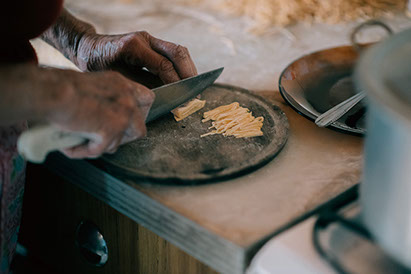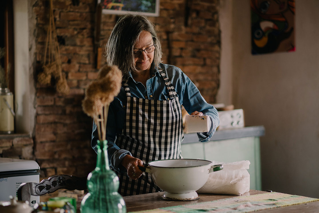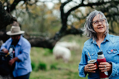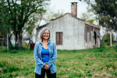 Magdalena Torres Lencina. Conocida como Malena, tiene su casa en Aranguren (Entre Ríos). Junto a su marido Beto, cría animales —sobre todo ganado y gallinas libres—, y tiene árboles frutales, con los que elabora dulces caseros.