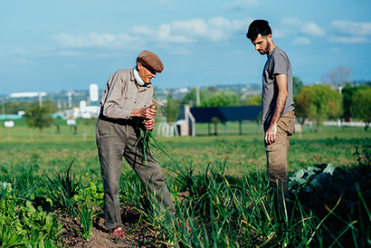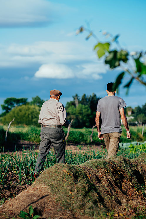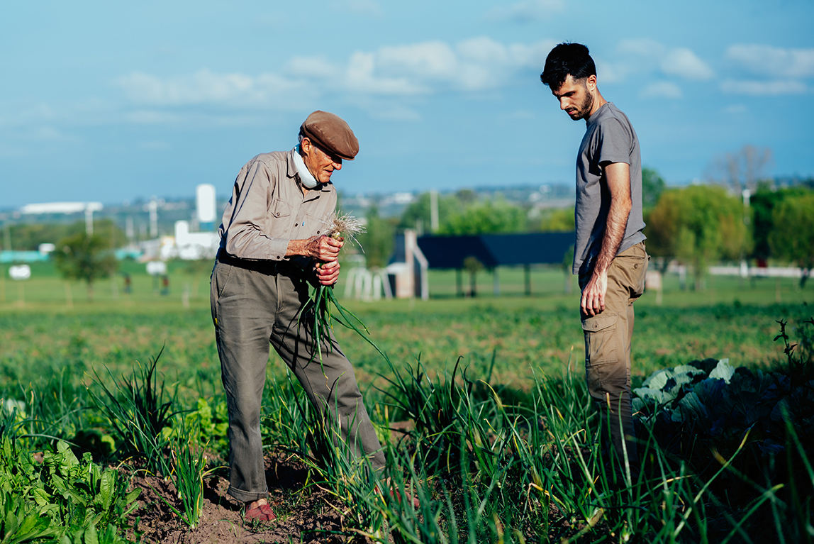 Luis Degenhard y Marcos Degenhardt. Tío y sobrino cultivan una gran variedad de verduras en su huerta agroecológica. Desde El Brete,